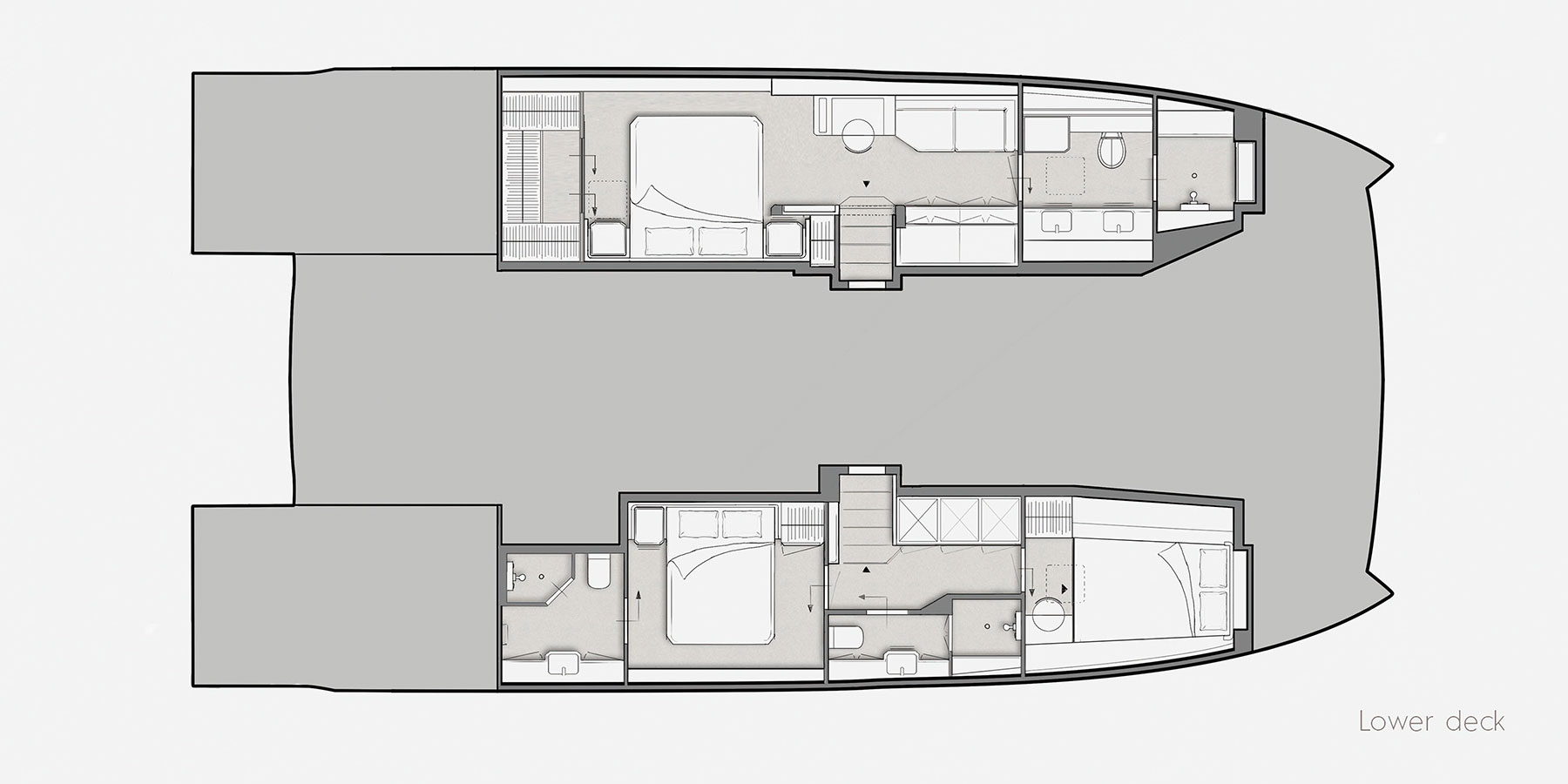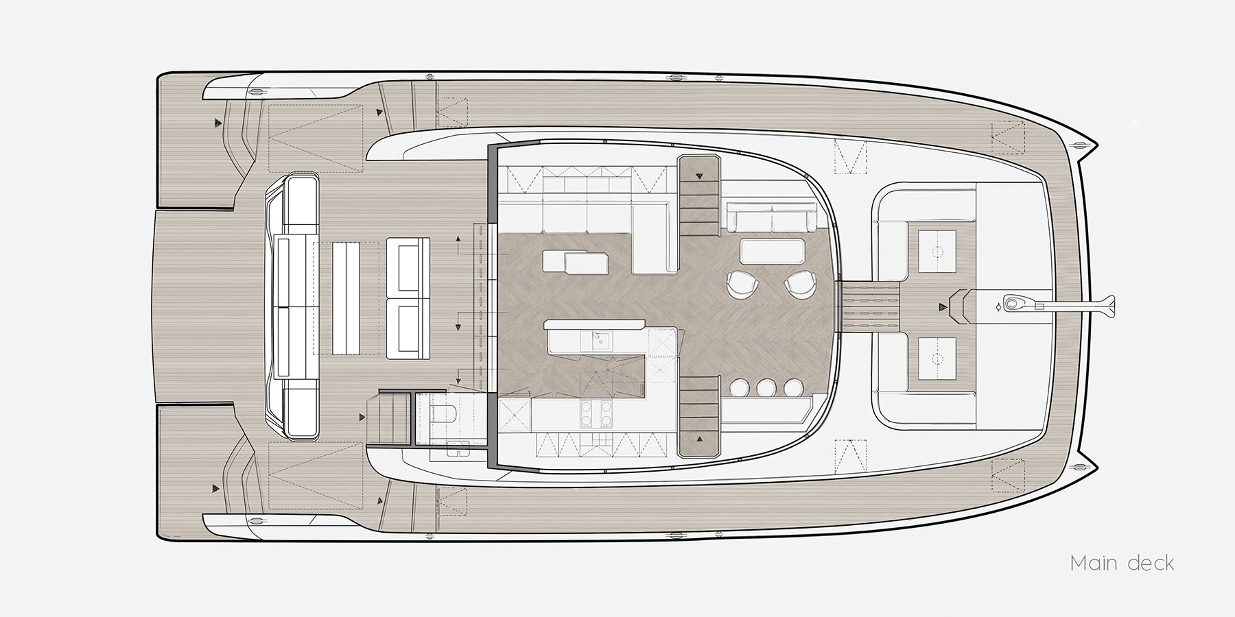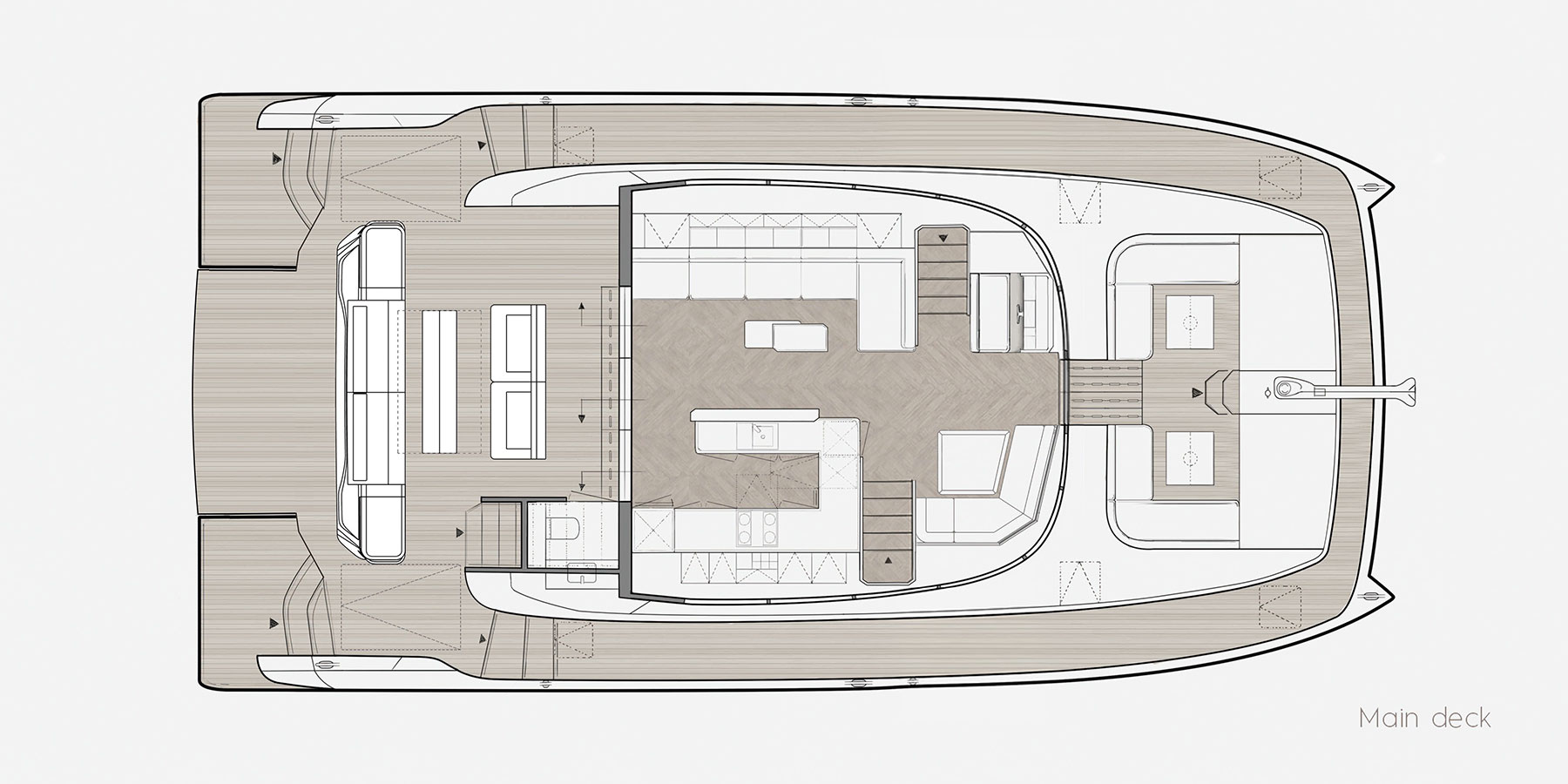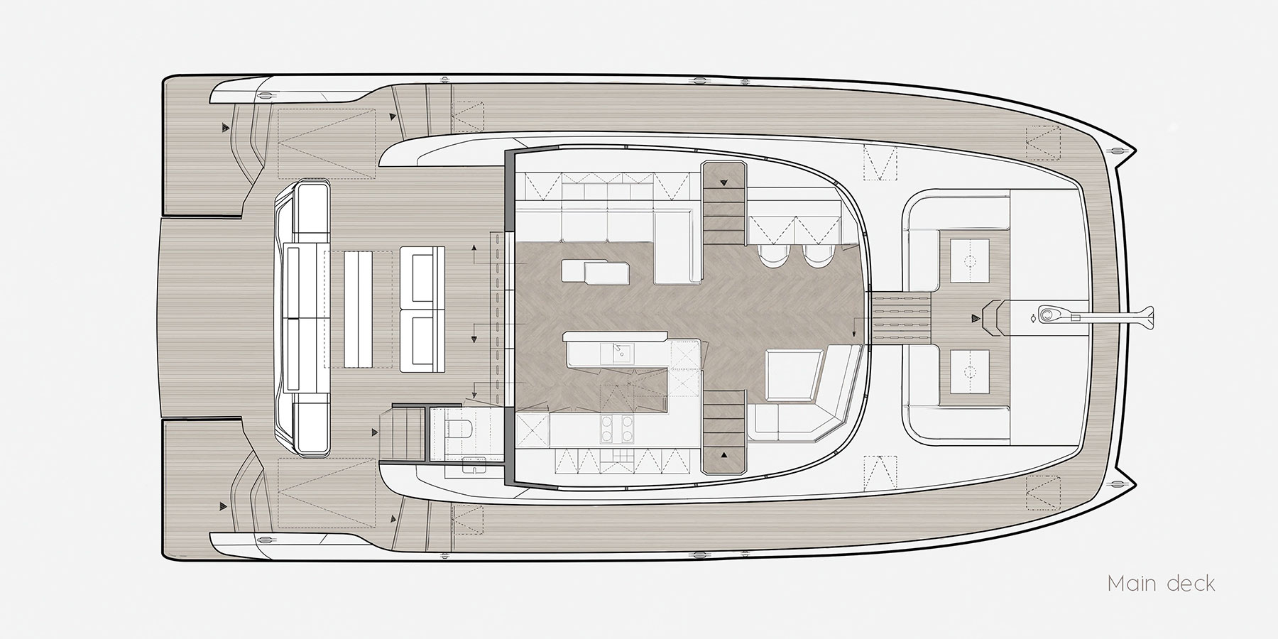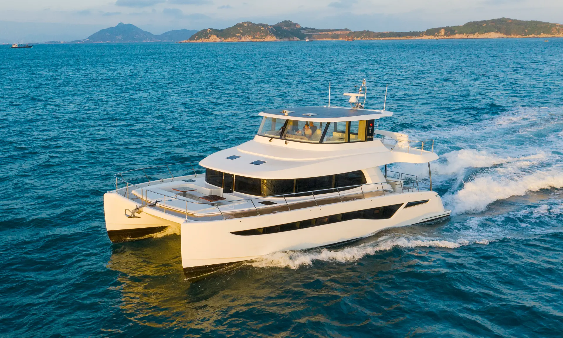 Her wide beam delivers remarkable stability and generous living space, while efficient twin hulls ensure a smooth, fuel-conscious ride. Every detail reflects GranOcean’s commitment to innovation and elegance – crafted for those who expect nothing less than perfection at sea.