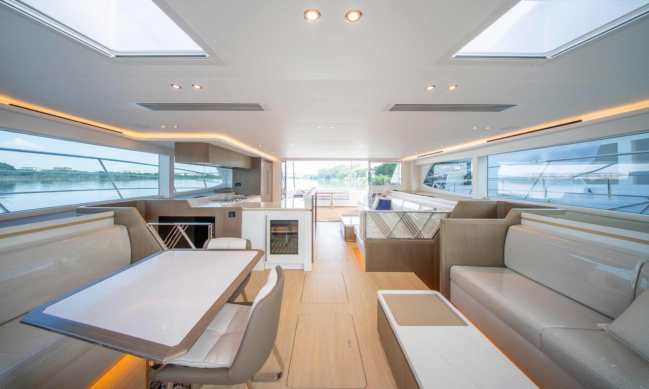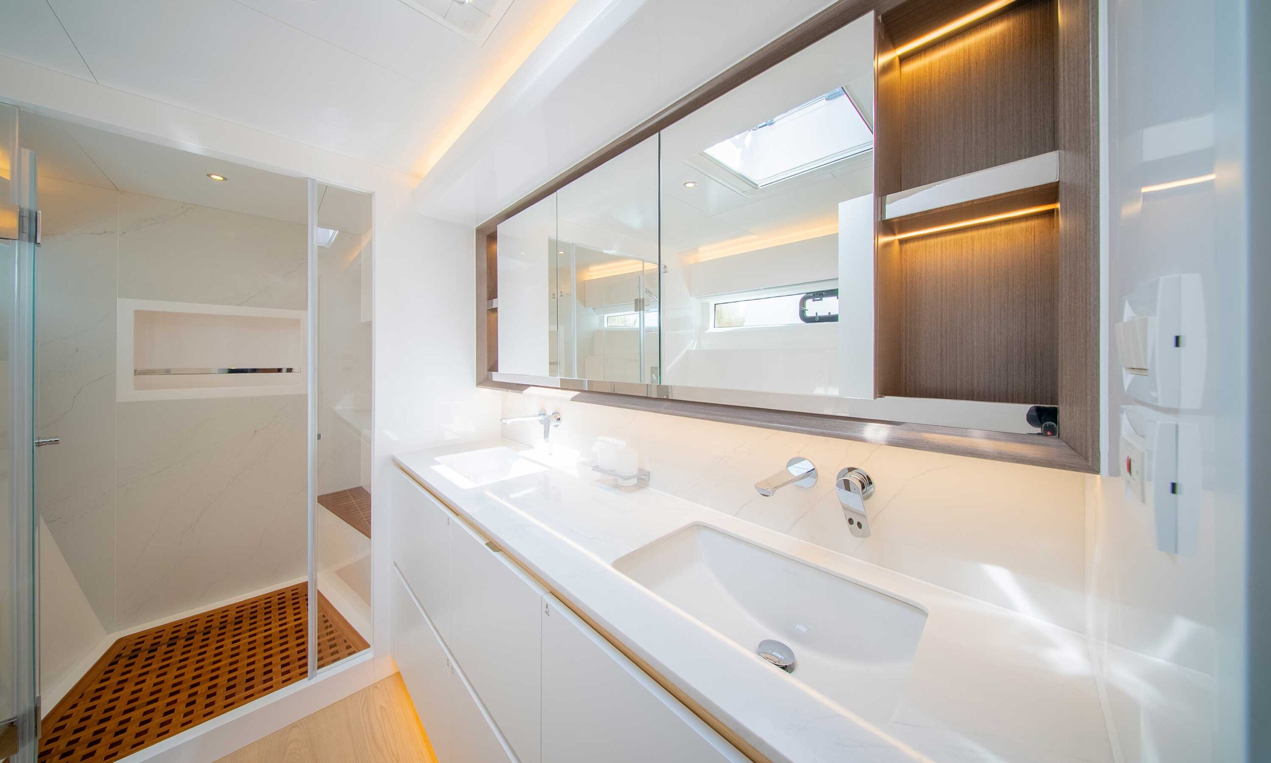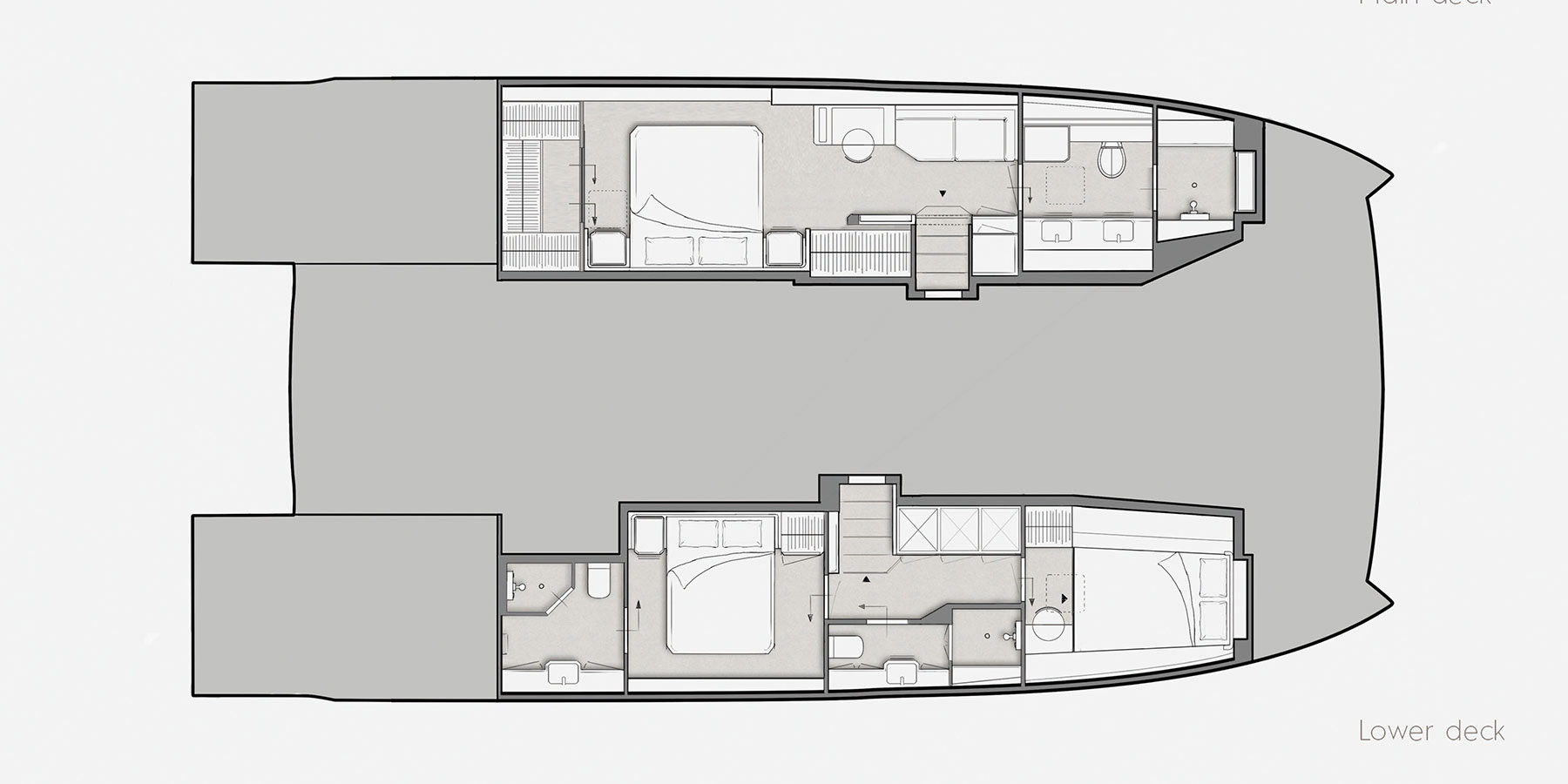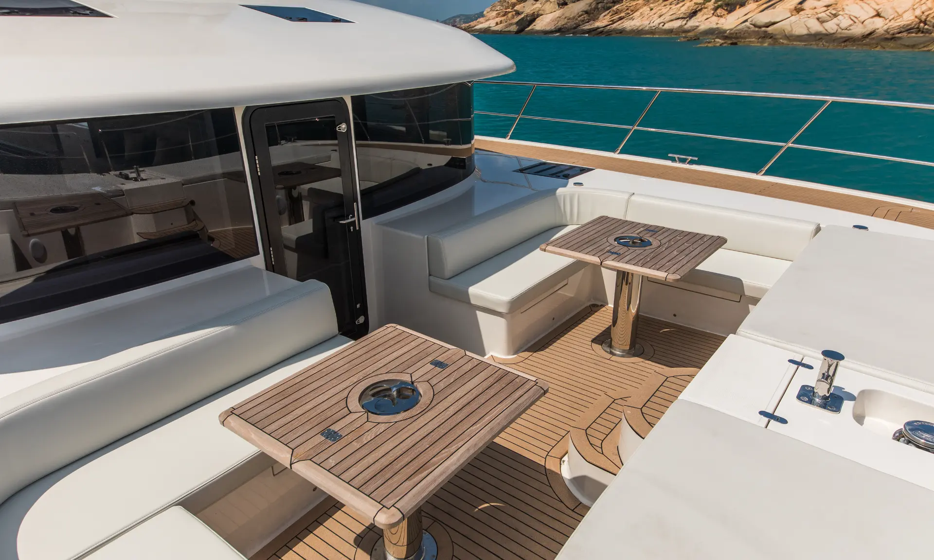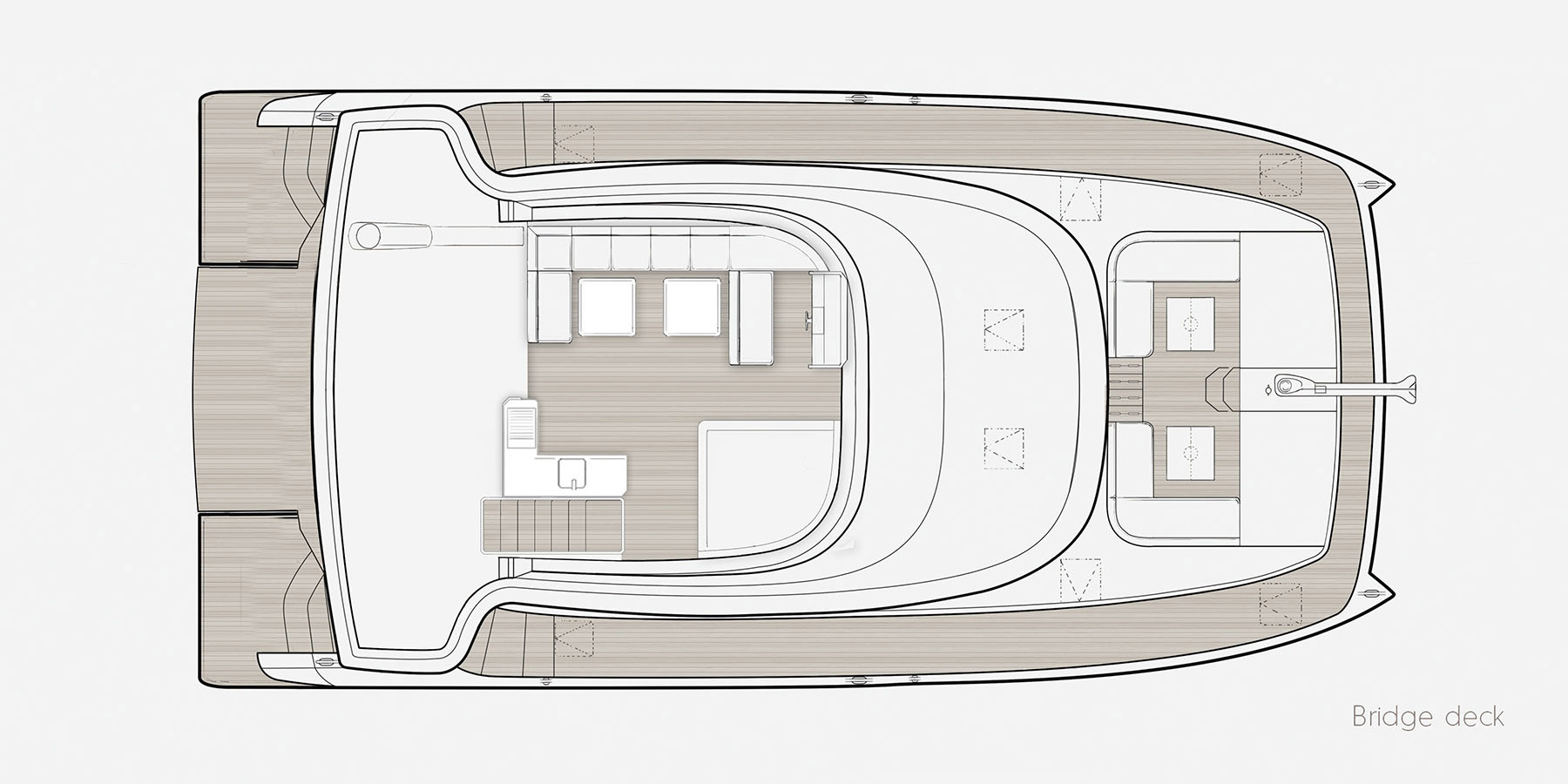 Her wide beam delivers remarkable stability and generous living space, while efficient twin hulls ensure a smooth, fuel-conscious ride. Every detail reflects GranOcean’s commitment to innovation and elegance – crafted for those who expect nothing less than perfection at sea.